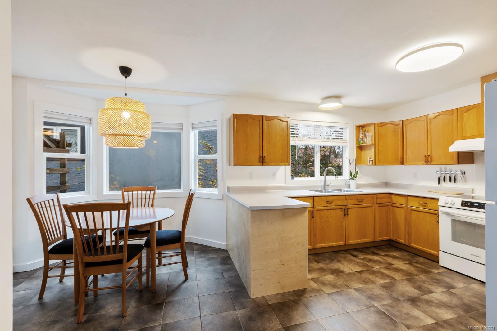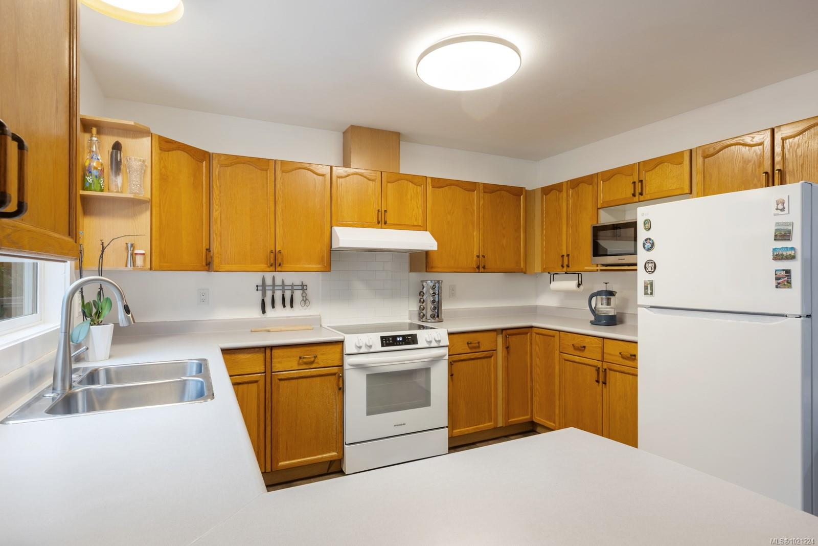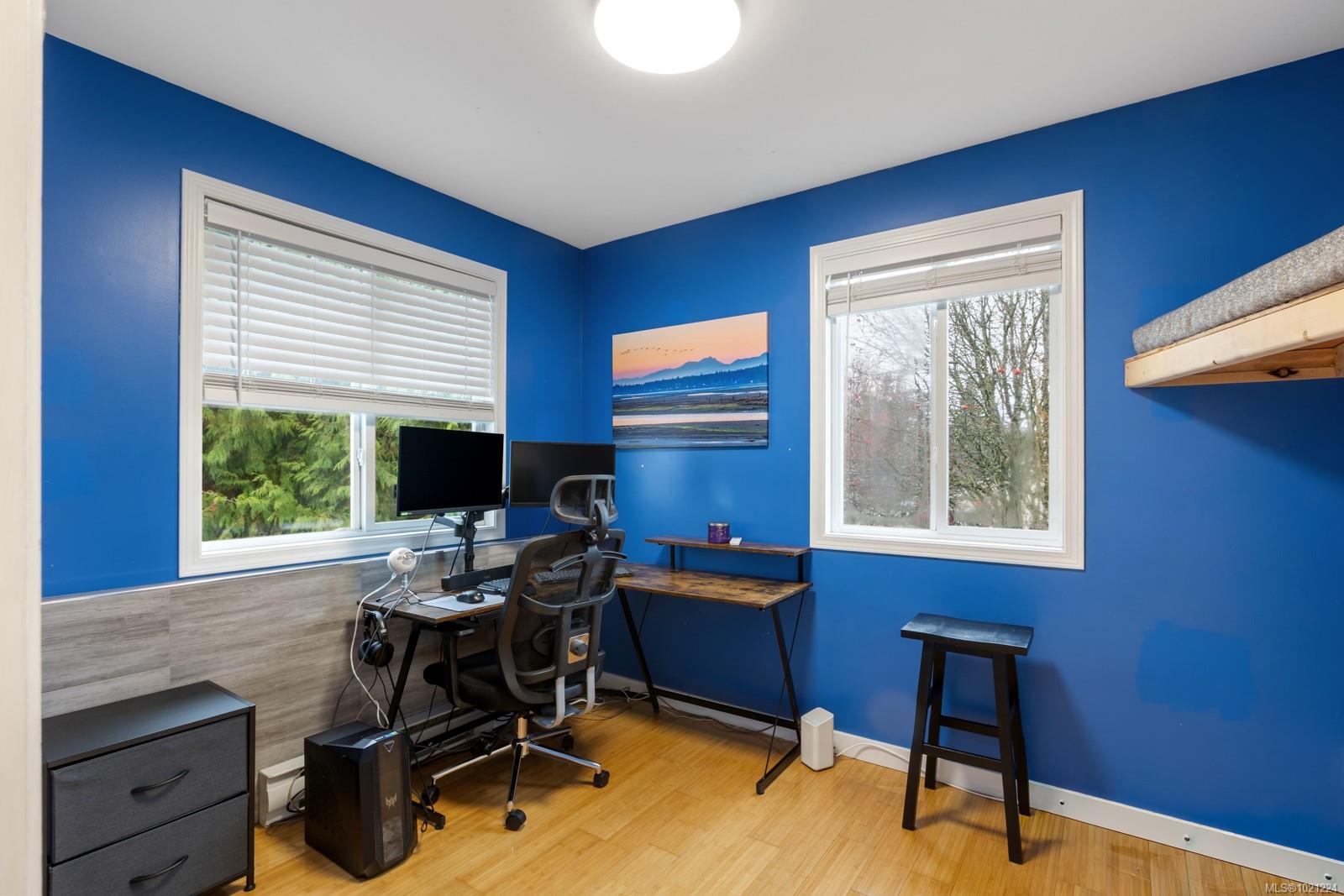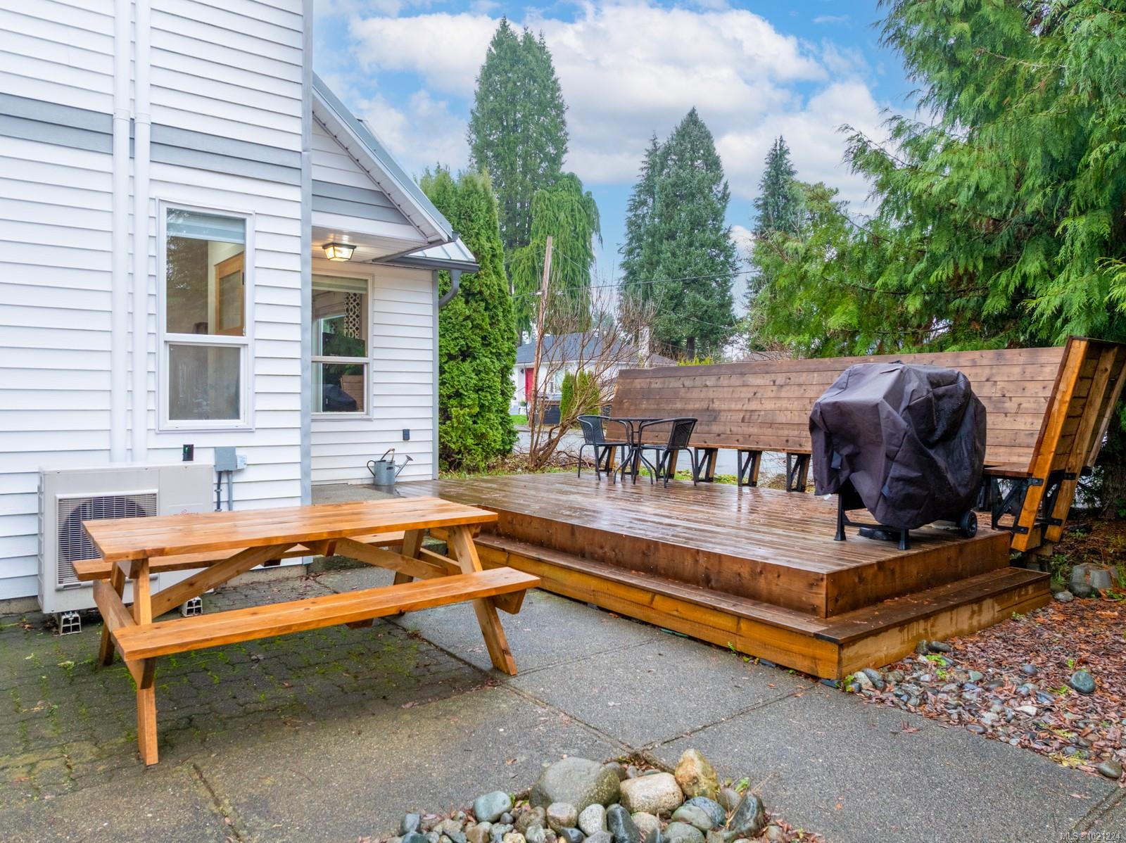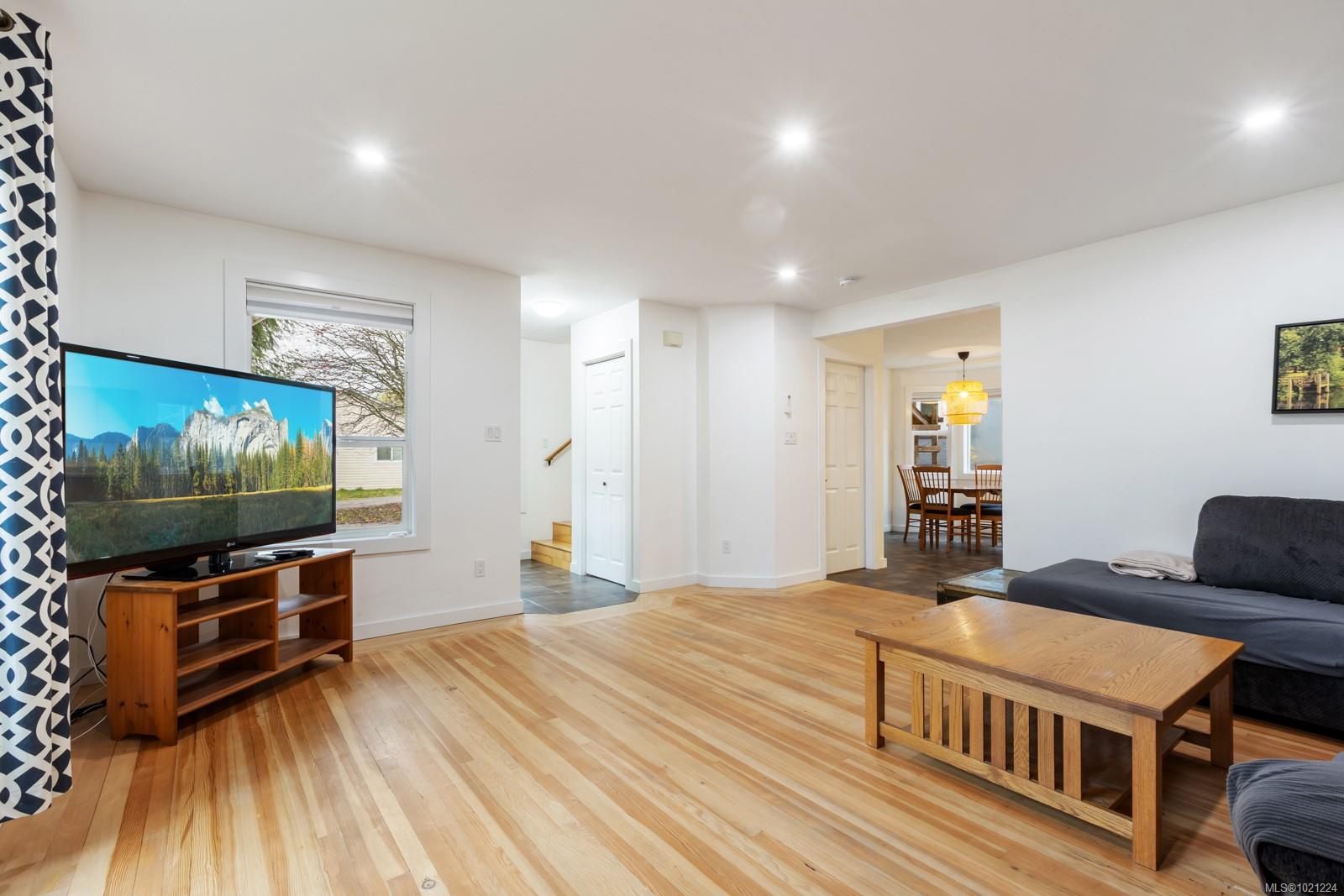 CHARMING HOME! This inviting 3-bedroom, 3-bathroom home combines warmth and functionality in a bright, open layout. The main floor features abundant natural light, wood flooring and specious main living areas along with a large laundry and utility room. Upstairs, bamboo laminate and tile flooring complement the three bedrooms and the stylishly renovated bathrooms – which include ceramic tile showers and backsplashes, updated lighting, and newer cabinetry. Heat pump & solar power for low electricity bills. Located in a Courtenay neighbourhood with an excellent walk score, this home is just minutes away by foot to both French and English elementary schools, a middle school, downtown Courtenay, the Puntledge River, & local parks and trails. The corner lot offers surprising semi-privacy thanks to mature hedging and fencing, and the well-designed patio creates a perfect space for entertaining, relaxing or soaking up the sun. A storage shed adds practicality with extra room for gear & tools.