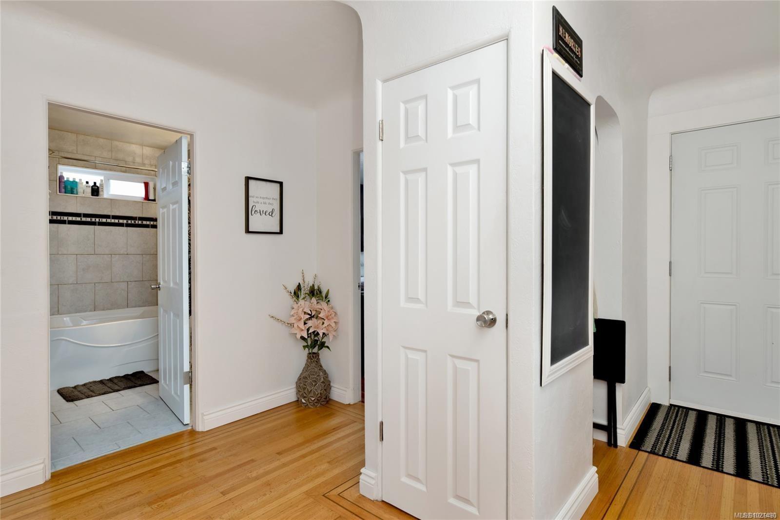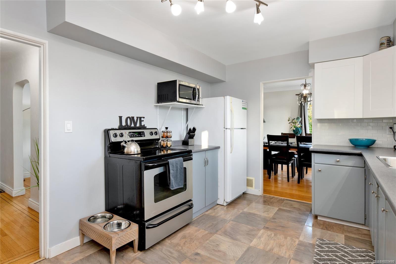 VACANT UPSTAIRS Nestled close to the hospital this 4 bed, 2 bath home boasts a mortgage-helping suite and a detached shop with a heat pump. The main level features 2 beds, 1 bath, a bright open living/dining area with a natural gas fireplace, and a modernized kitchen. Refinished original wood floors add warmth, complemented by upgrades like a gas furnace and thermal windows. Downstairs, a fully separate 2 bed, 1 bath suite with its own laundry is perfect for family or rental income. The private, south-facing, fully fenced backyard offers a spacious deck, firepit, dog run, and access to the heated shop—ideal for hobbies or a home office. Zoned R5, allowing up to 4 dwelling units in no more than 2 buildings (e.g., two duplexes, a fourplex, or a house with a suite and carriage house), this property is steps from the ocean, parks, hospital, schools, and grocery stores. Ample parking and timeless appeal make this a versatile gem. All measurements are approximate; verify if important.