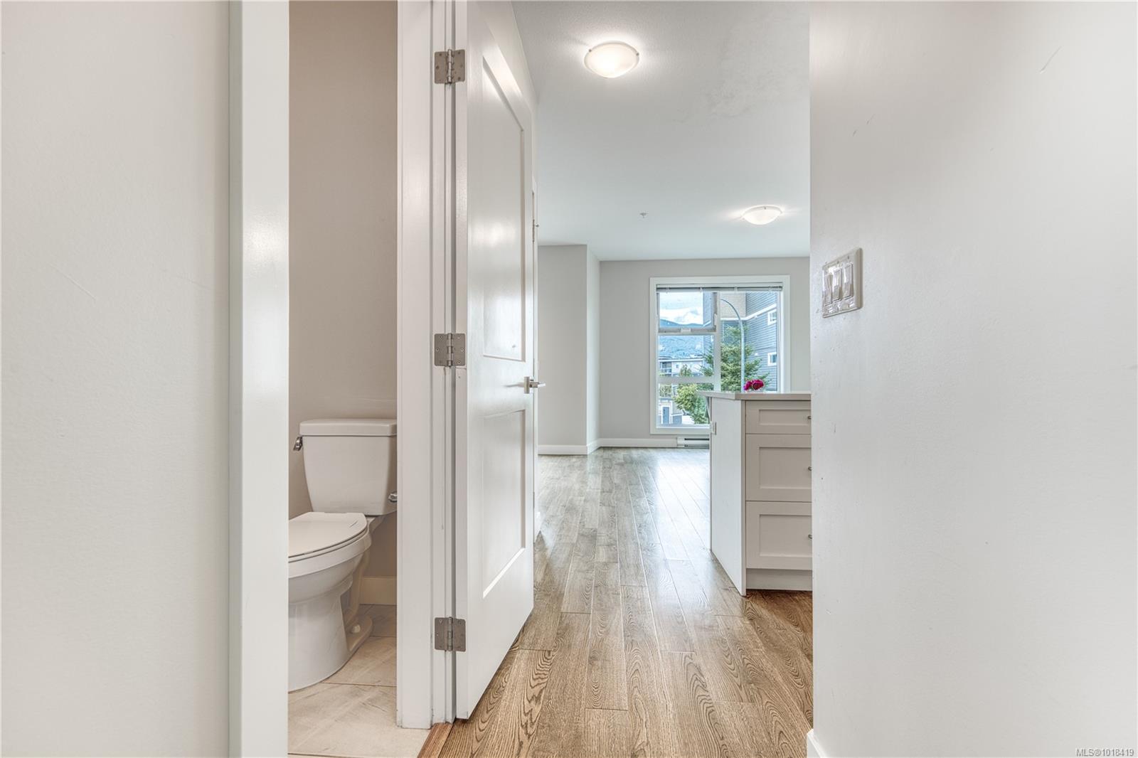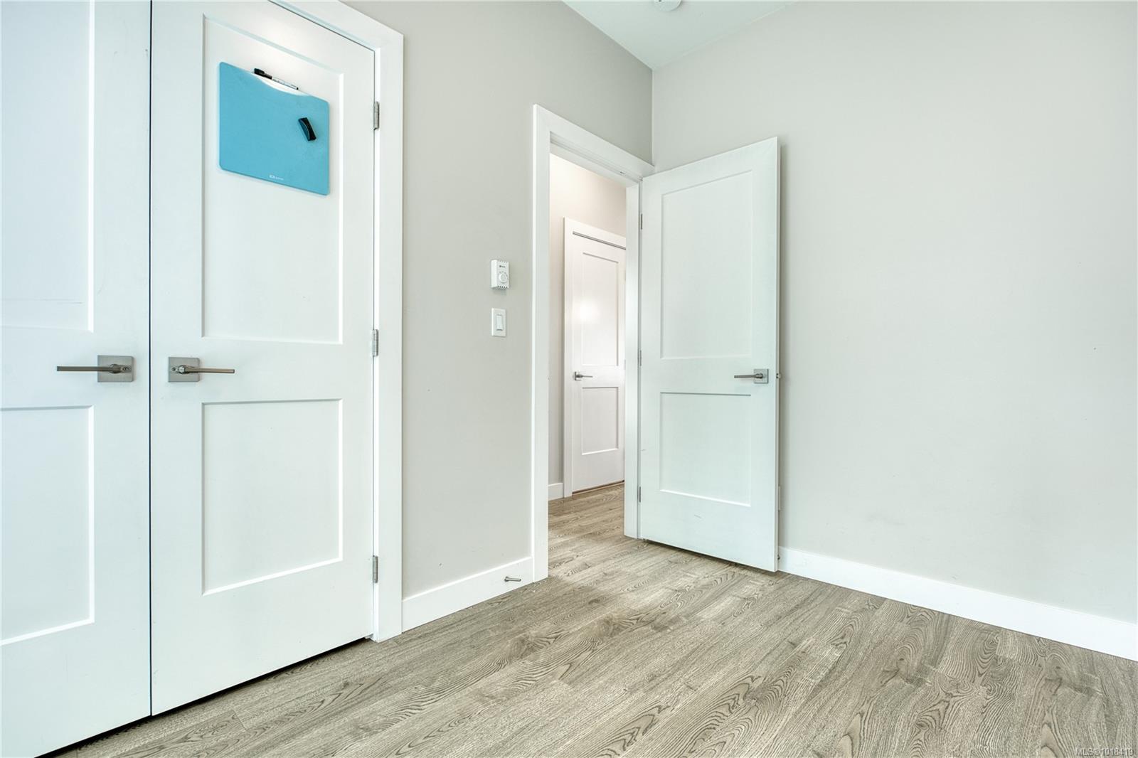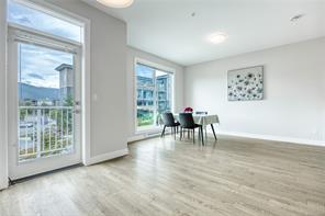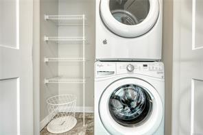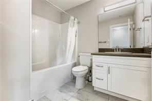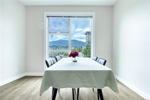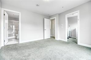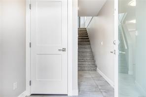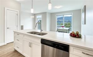 Welcome to this modern three level townhome situated in a fantastic central location. The main level offers a bright open floor plan with mountain view. The stylish kitchen features four stainless appliances, peninsula with eating bar, undermount sink, a bedroom or den. Also on the main level access to the balcony and stacking full-sized laundry. Upstairs boats the main four piece bathroom, two bedrooms including the spacious primary bedroom with three piece ensuite and walk-in closet. On the lower level is a large storage and single garage. The complex allows rentals and pets. This is a great location near shopping, restaurants, NRGH, and other amenities. All data and measurements are approximate and must be verified if fundamental.