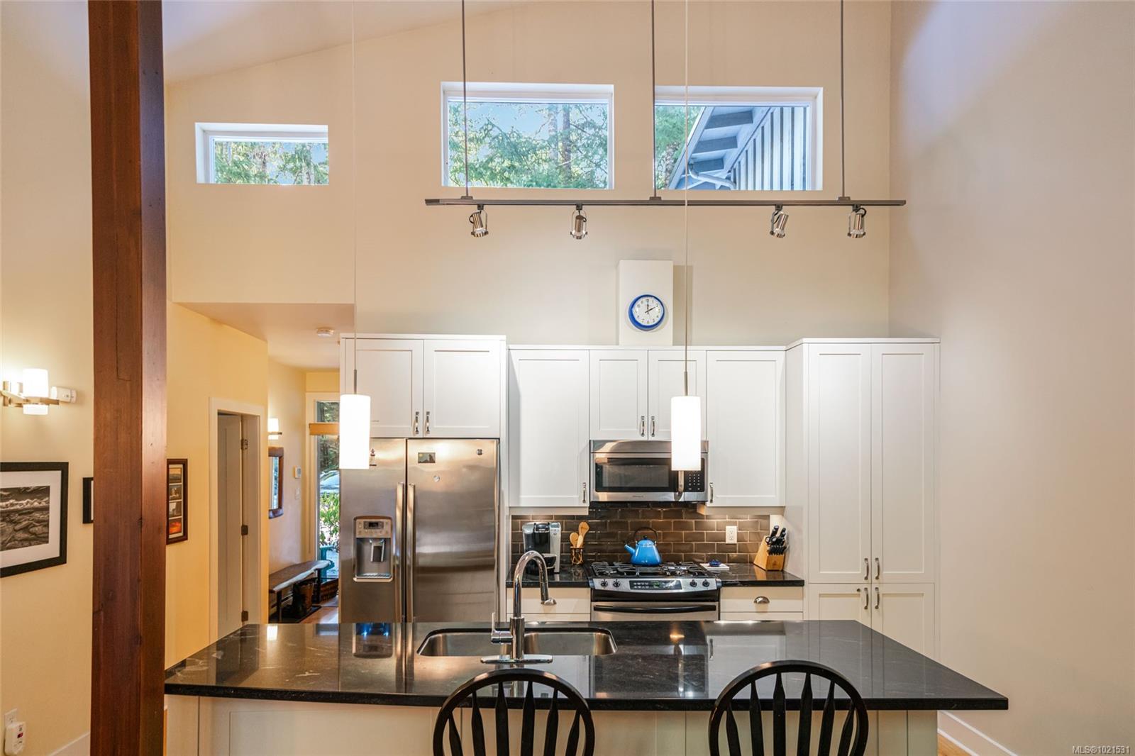 Beside Rathtrevor Park and a short walk to warm, sandy beaches, this 2-bed resort-style home backs onto forest for exceptional privacy. Vaulted ceilings brighten the open-plan living area, which includes a granite kitchen, cozy fireplace, and private patio for outdoor dining or wildlife watching. The layout offers excellent bedroom separation, with a spacious primary suite and private guest suite, plus two bathrooms with heated floors. This is an ideal coastal retreat in a sought-after Parksville location, close to scenic beach trails, mini-golf, and great restaurants. Perfect as a getaway or for income through permitted short-term rentals, with a full furniture package and dedicated website available.