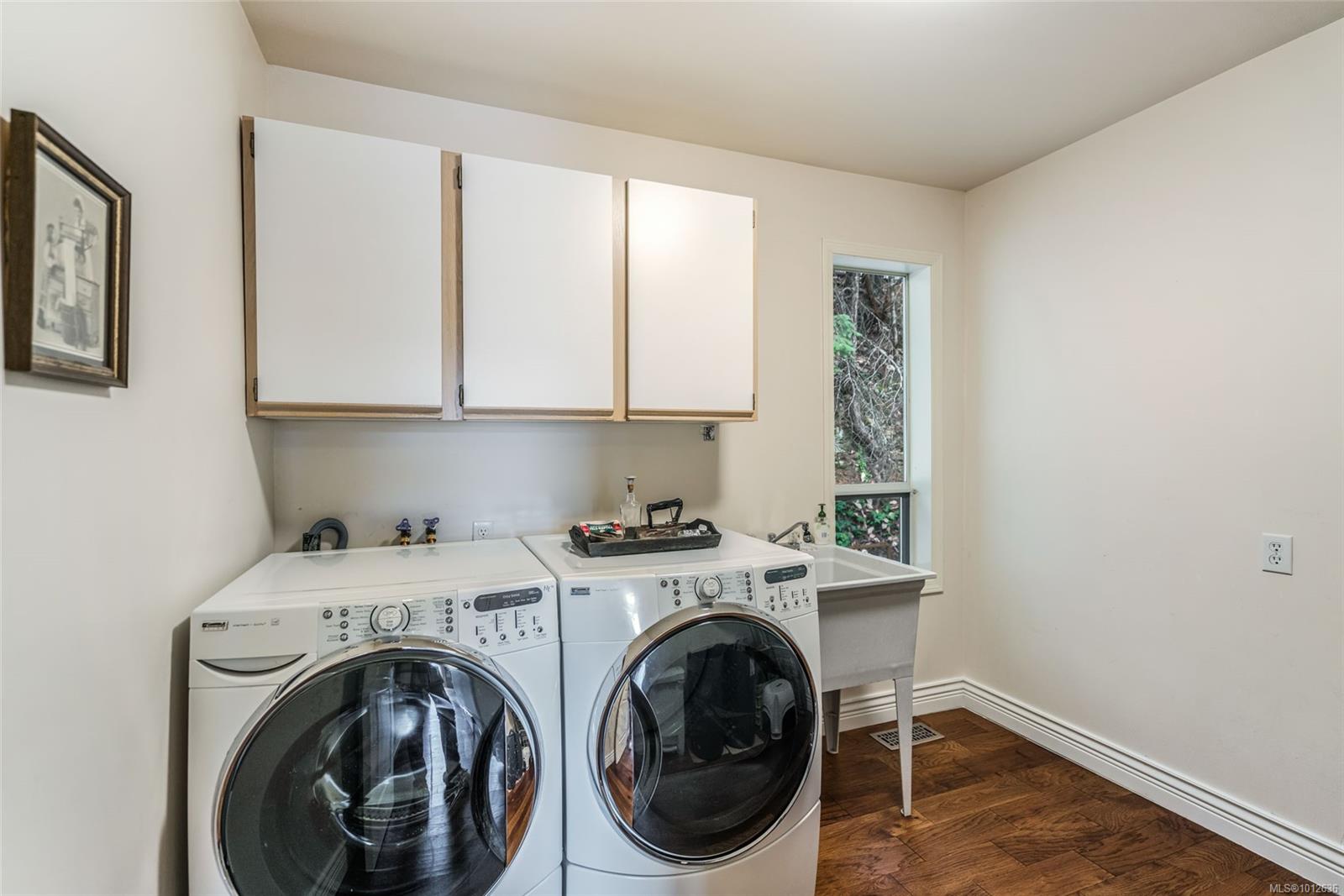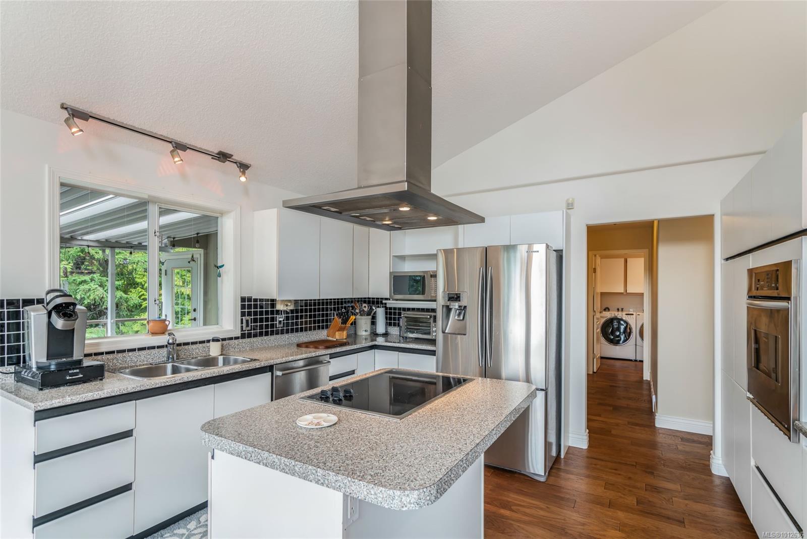 Grand Westcoast Style home in Departure Bay’s Sherwood Forest. Conveniently Located high off a no through road in a quiet & private area close to schools, shopping, beaches and ferries. The yard is low maintenance, sloped & secluded at the back. This spacious 3000 sq ft home features many beautiful upgrades. The rooms are large open & bright with 16′ 10 vaulted ceilings in the living room & 12’8″ ceilings in the fantastic kitchen. Engineered wood flooring is throughout the main floor with new carpet in the bedrooms. Shiny granite-look countertops, newer stainless appliances & double French doors off the kitchen to a cool covered deck. Mastersuite has a massive walk in closet & ensuite with walk in shower, skylight, double sinks, new vanity & toilet. The lower floor offers a two bedroom suite (unauthorized) plus 3rd bedroom or office. Large oversized garage with workbench. RV Parking.