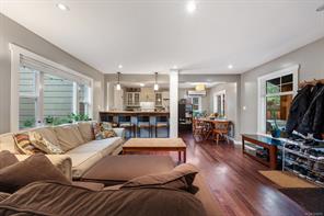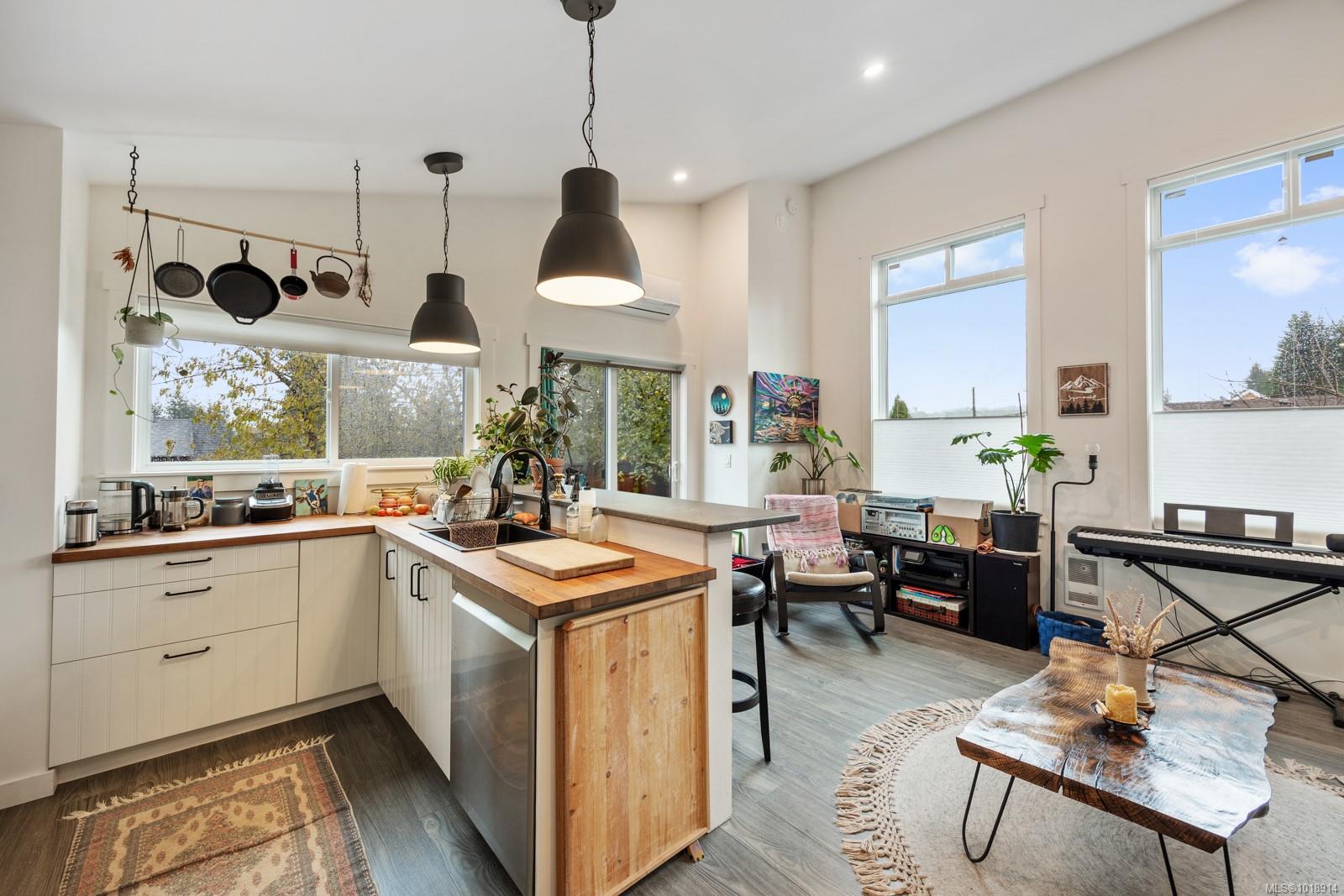 Ideally located for walkable, connected living, this Cumberland property is steps from trails, community amenities, and the Village core. The main home offers two bedrooms plus a den, a modern one-bedroom in-law suite addition (2019), and recent updates including a new HWT (2024) and washer/dryer (2025). The home can be opened up to create a large family home with up to four bedrooms. The carriage house (2017) has a legal, separately metered suite above a large garage. On the exterior, this home has fruit trees, the homes feature West Coast style with Hardie siding, reclaimed cedar, and black exterior details. Set on nearly 0.3 acres, there is lots of room for RV/boat parking – bring your toys!