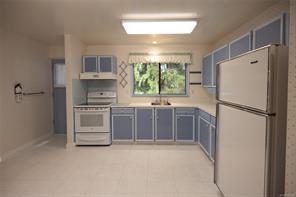 The upper level features laminate flooring throughout, a bright and spacious kitchen, and direct access to a large deck with dog-run access—perfect for outdoor living. Three comfortable bedrooms and a full bathroom complete the main floor.