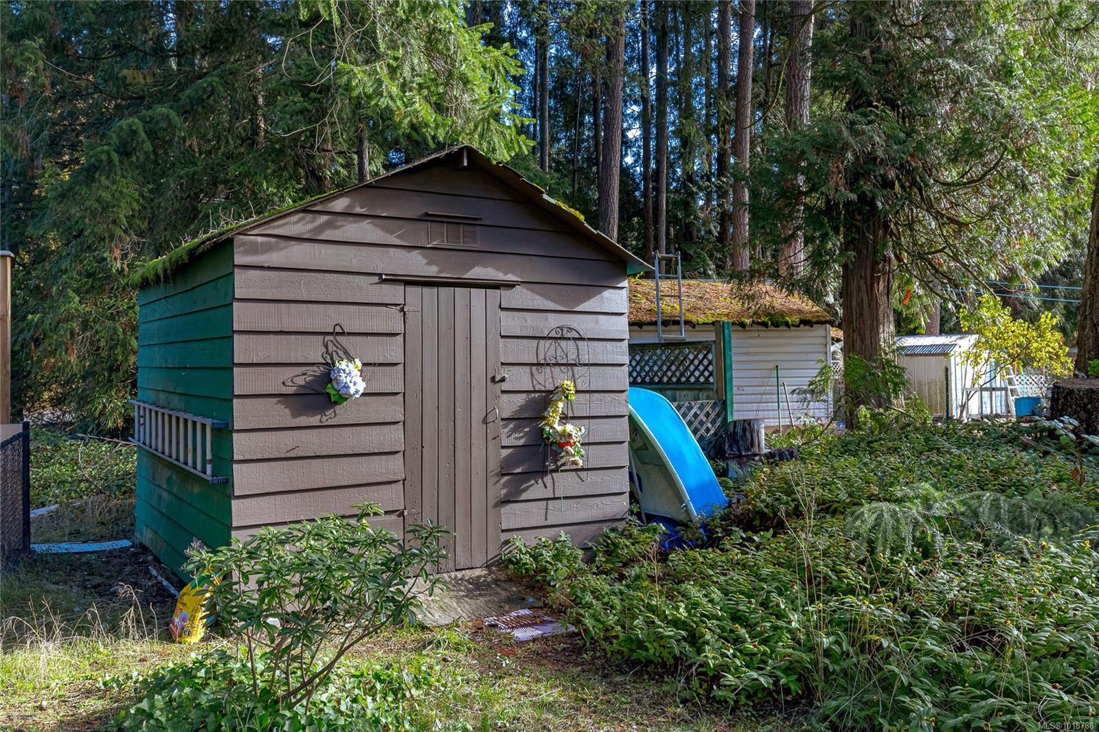 Welcome to Springwood Park, a sought-after, friendly 55+ manufactured home park. Unit 11 is situated on one of the larger lots with plenty of yard space on either side of the unit to enjoy, & a storage/workshop shed with power at the back for all your tools. The home features 2 bedrooms, one 4-piece bathroom, a kitchen/dining room combo, & a living room with a wood stove. Additional features include a covered porch, 2 window air conditioners, in-unit laundry, large closets, & a built-in hutch in the dining room. With some TLC, the new owner can enjoy living here for years to come. This unit is being sold “AS IS, WHERE IS”. There is a 1 pet policy in place (refer to park rules). Located between Cobble Hill & Mill Bay with easy access off the Trans Canada Highway. Just a short drive to Duncan or Victoria and close to all the amenities Cobble Hill & Mill Bay have to offer. Request an information package & book your showing today!