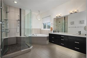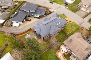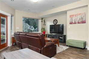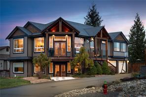 WEST COAST CUSTOM home with timber frame accents and gorgeous mountain views! The main level features an open layout with 11’ ceilings, large windows for natural light, and double doors leading to a grand front balcony. The ideal kitchen offers quartz counters, maple shaker cabinets, under-cabinet lighting, a large island, and a walk-in pantry. Upstairs are 3 bedrooms, including a primary suite with private deck, walk-in closet, and spa-like ensuite, plus a 5-piece main bath and laundry. The lower level offers a large media room, 4th bedroom, full bath, and rough-ins for a second laundry and kitchen—suite potential! The nearly 1,000 sqft garage includes a workshop area, benches, and storage. Extras: heat pump, fir doors, built-in speakers, room for RV/boat parking, and great gardening space in a top school catchment. A west coast jewel with space, style, and views!