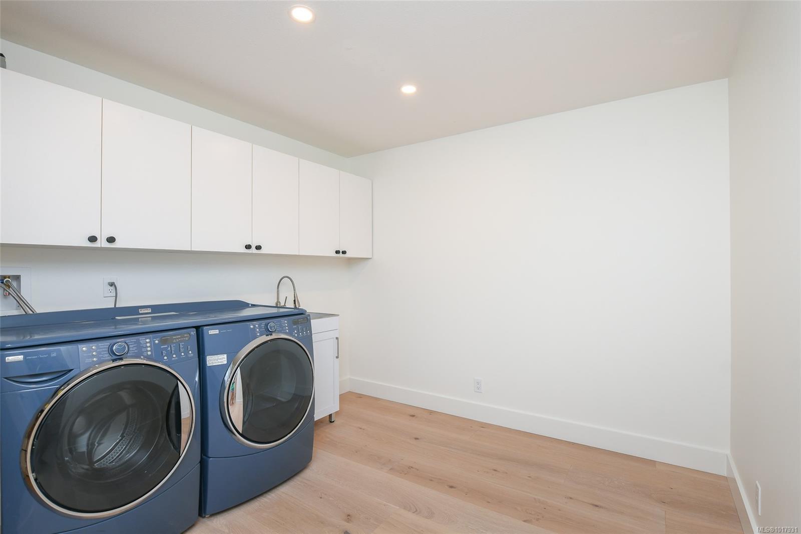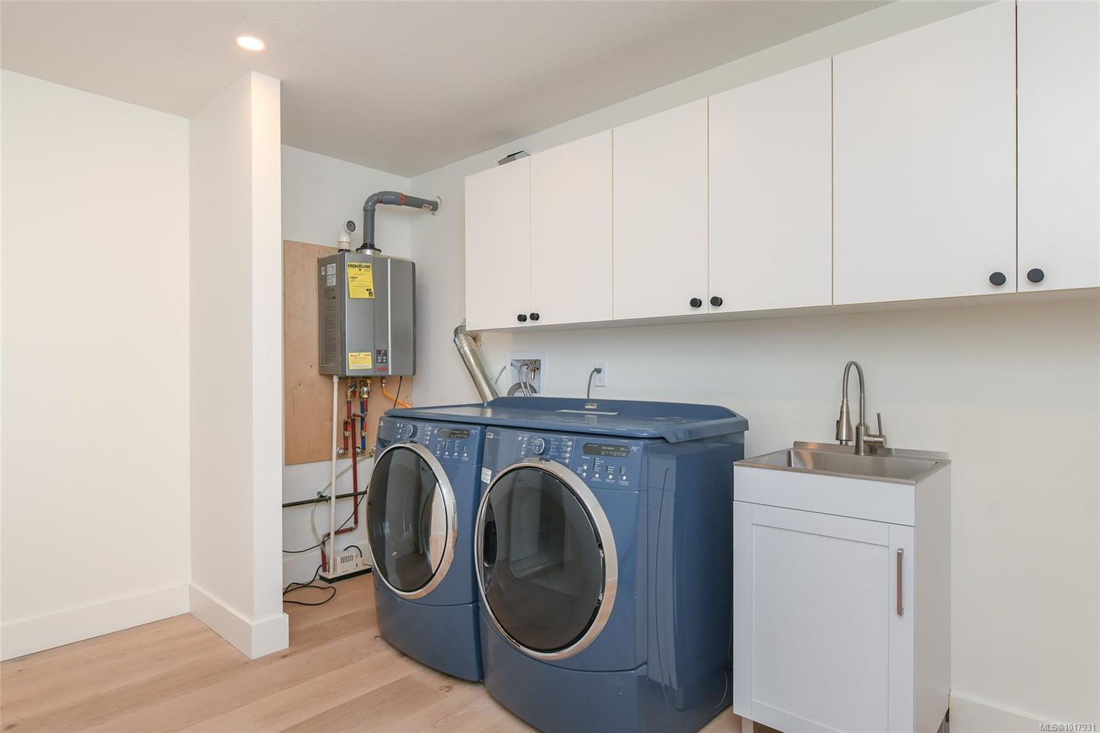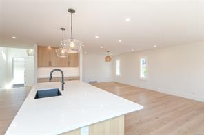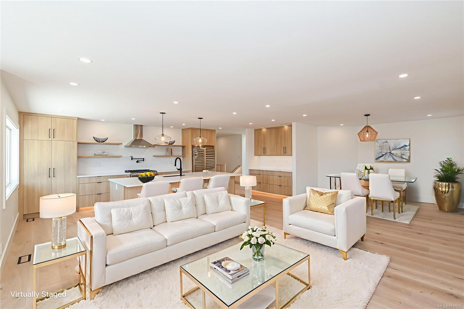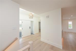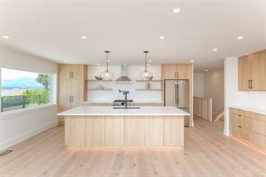 A rare blend of beauty, function, and flexibility. This 5 bed, 3 bath walk-out rancher offers 4,000+ sq ft with ocean & mountain views, a private yard, and a coveted location in a top school catchment. Fully renovated in July 2025 and never lived in, the upper level features 3 bedrooms, 2 bathrooms, a new kitchen, brand new high-end hardwood floors, custom stair railings, new lighting, fresh paint, and a 54×14 ft deck off the kitchen and primary suite. The lower level echoes the same care with 2 bedrooms, 1 bathroom, large second laundry, side entry, covered patio, plumbing for a kitchen or bar, and an updated gas fireplace. Extras include a generous mudroom, new front door, 2-car garage, mature landscaping, Poly-B removal, on-demand hot water (2024), and roof (~8 yrs). Designed in a Scandinavian-inspired, organic modern palette—soft, airy, serene.