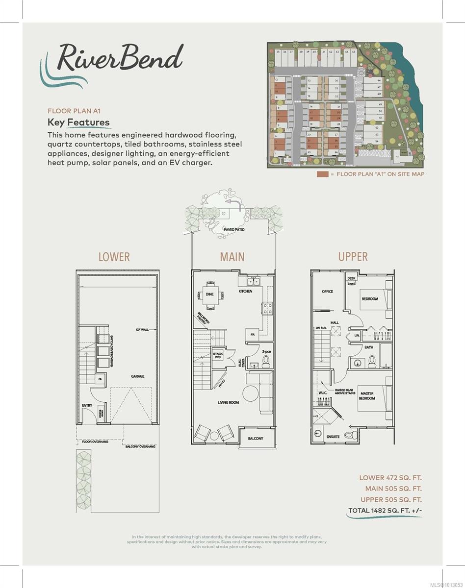5% Deposit for limited time! The Village of River Bend where recreation, leisure and modern living come together. Nestled along the Englishman River, this Phase 1 home features 2 bedrooms plus a den and 2.5 bathrooms, thoughtfully designed with hardwood floors, open living spaces, and a private patio. The sustainable homes have solar panels, EV chargers, efficient HEPA HRV’s, Heat Pumps. Beyond your home, River Bend offers a lifestyle like no other, cast a line for world-class fly fishing, explore scenic walking and biking trails with easy access to the beach, forest, river and local amenities. Enjoy the peaceful connection to nature all around you. The village-style amenities include individual garden plots, playground, yoga patio, outdoor gym, and a shared recreation facility with lounge, private BBQ and Hot Tub. Accessible living options with walkways, ramps, lifts for aging adults and lots of room for storage, River Bend is designed for all stages of life! Move in Summer 2026!