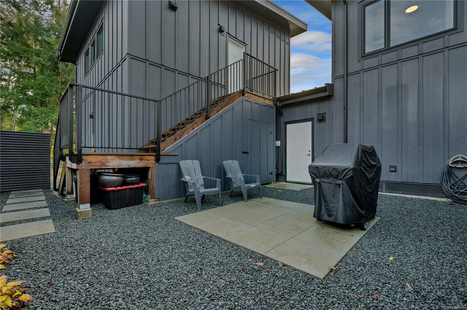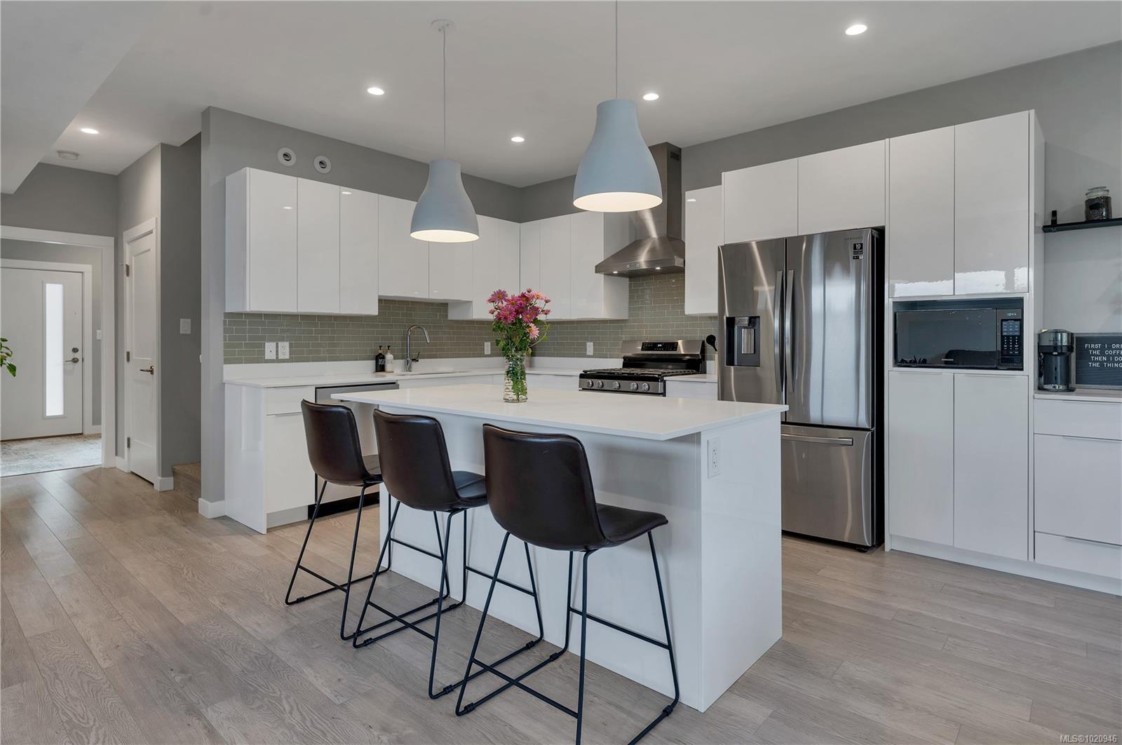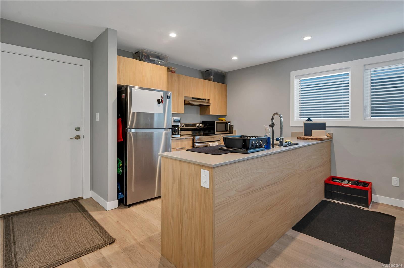 Modern living meets exceptional flexibility in this 2022-built home on a quiet private lane in Willow Point. The main residence offers 4 bedrooms and 2.5 baths with 9 foot ceilings on the main level, premium vinyl plank flooring, and quality modern bathroom finishes throughout. A bright open layout connects the kitchen, dining area, and living space to the backyard for easy everyday living. A fully separated 1-bedroom legal suite sits above the garage with its own entrance, outdoor area, and 2 dedicated parking stalls. With great natural light and privacy from the main home, the suite is ideal for long term tenants or extended family. The home features a metal roof, Hardie plank siding, a gas furnace with an electric heat pump, low maintenance landscaping, a 2-car garage, and remaining home warranty. Walking distance to the Sea Walk and Willow Creek trails, this is a rare chance to own a newer home with a high quality suite in a sought after area.
