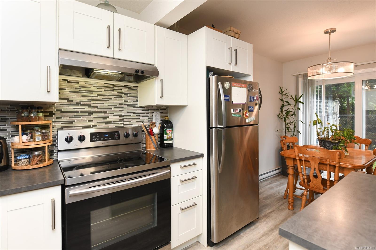 Renovated Townhouse in East Courtenay! Just minutes from recreation, schools, shopping, Costco, Crown Isle Golf Resort, and the hospital, this pet-friendly home offers a great layout with a bright living room featuring new windows and patio door, a cozy gas fireplace, and modern vinyl flooring. The kitchen with updated cabinets, counters, tile backsplash, and stainless appliances opens into the living area, making entertaining a breeze, and has access to the private, quiet patio. The main floor also includes a bathroom with in-unit laundry, and access to the garage. Upstairs, you’ll find three comfortable bedrooms, including a spacious primary with a 4-piece ensuite. Located just a short walk from Mark R. Isfeld Secondary and Valley View Elementary, this home is perfect for families, first-time buyers, or downsizers seeking comfort, convenience, and a great community to call home. Book your showing today!