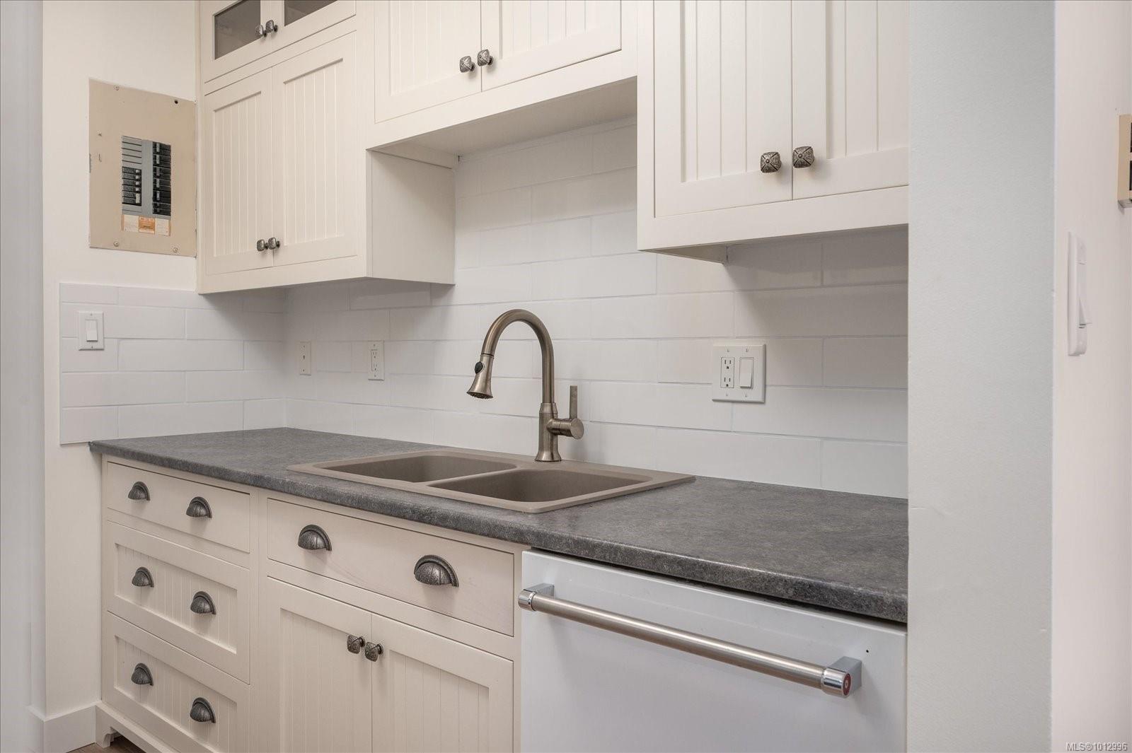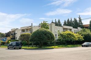 Stylish, spacious & updated, this 2-bed/2-bath top floor, corner condo blends comfort, convenience & privacy. The well-appointed kitchen has quality appliances inc. new fridge, custom cabinetry & ample storage, opening to the adjoining large dining & living rooms w/ lovely fireplace feature ready for an insert. A covered balcony enjoys a tranquil, treed outlook for added privacy. The large primary bedroom is a true retreat w/ double closets & renovated ensuite, while the second bedm & main bath with barn door add style & functionality. Highlights incl: new flooring & fixtures, newer interior doors, crown mouldings, fresh paint, expansive windows, in-suite laundry, large storage room & storage locker & underground parking. This quiet, pet-friendly building has energy-efficient upgrades (windows, siding, balconies) & a newer roof add value & peace of mind. Don’t miss out on this fabulous condo within walking distance to shops, restaurants & the seawall! Data approx–verify if important.