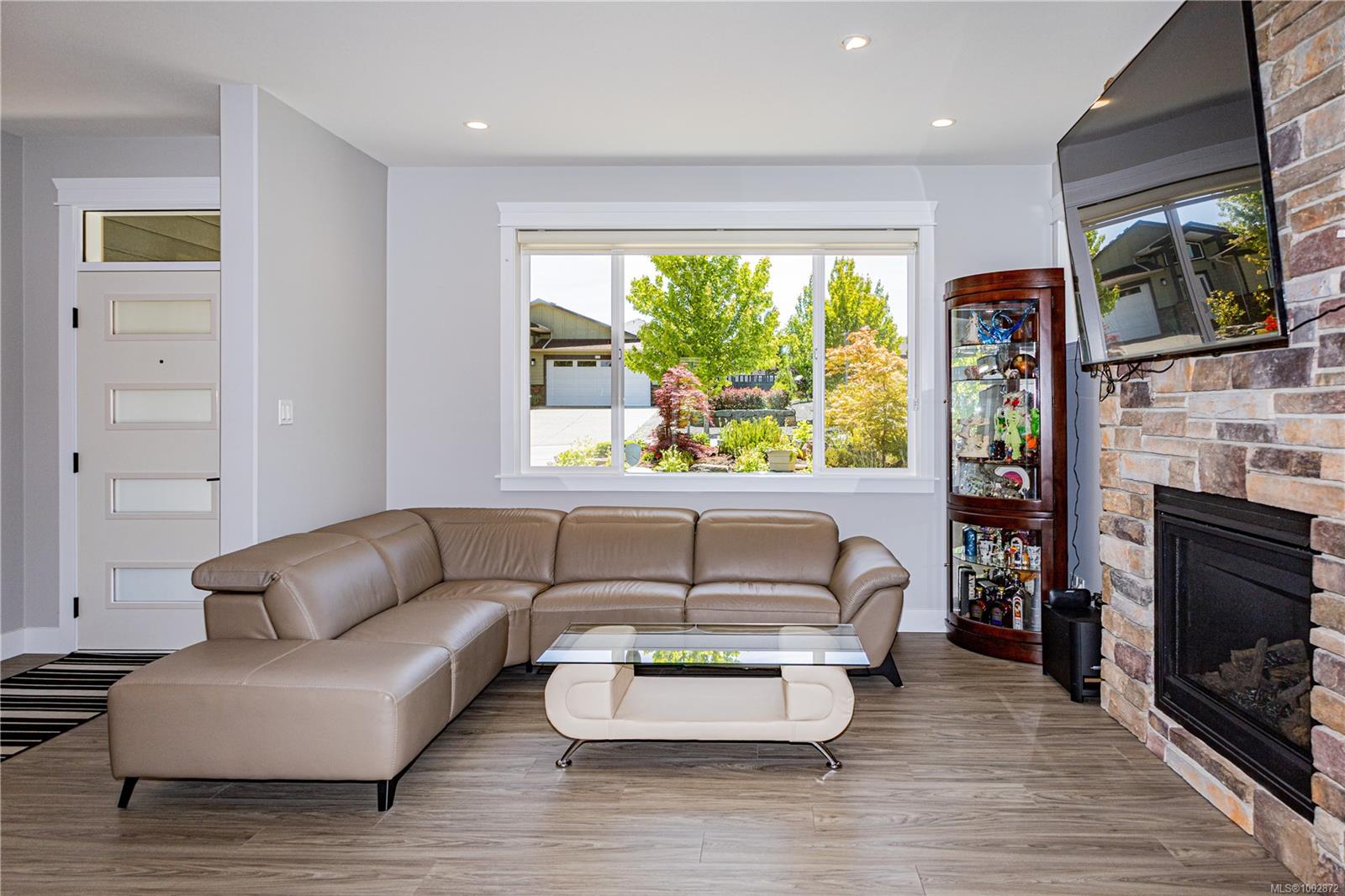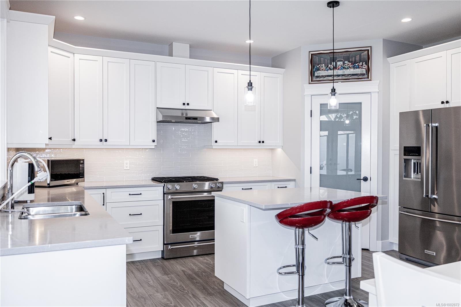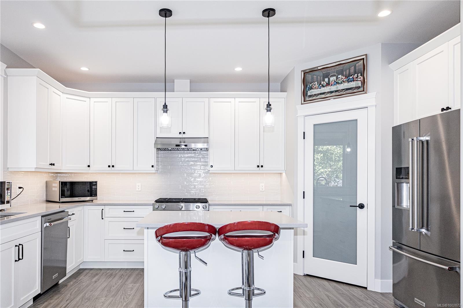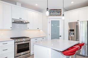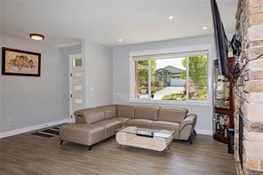 Better than & new with no GST! Willow Point, 1,550 sq/ft rancher with fantastic extra features that are sure to impress. Spacious open concept 3 bedroom, 2 bathroom home offers a stone faced hearth in the living room with gas fireplace, gleaming kitchen beautifully finished with modern white cabinetry topped with quartz counters, island, tile backsplash, Stainless KitchenAid appliances, gas stove & pantry. Vinyl plank flooring throughout. King sized primary suite complete with a walk in closet and a 5 pc ensuite finished with quartz counters, double sinks, heated tile floors, a large soaker tub and custom tile with glass doors enclosed walk in shower with soothing rain head. The two other bedrooms are also a good size and the second full bath with tub/shower has heated flooring & quartz counters. This great plan offers front & rear covered patio’s for year around enjoyment, landscaped with in ground sprinkler fenced. One of the best features is a 6 ft crawl space with exterior access.