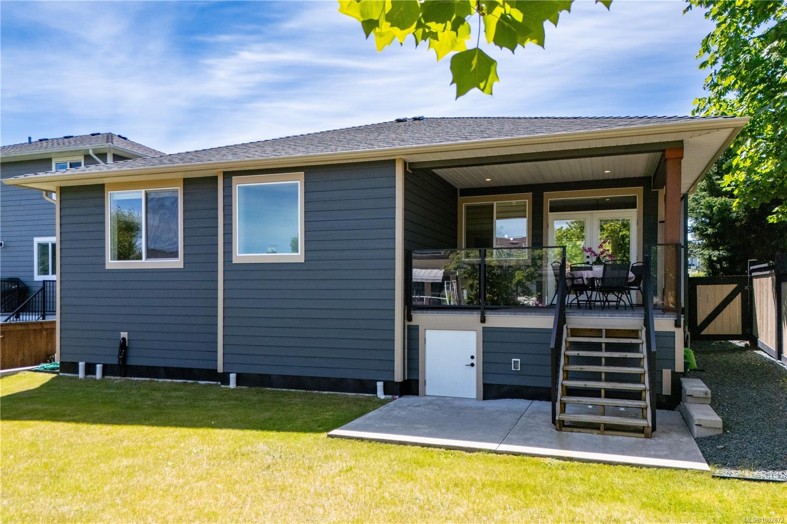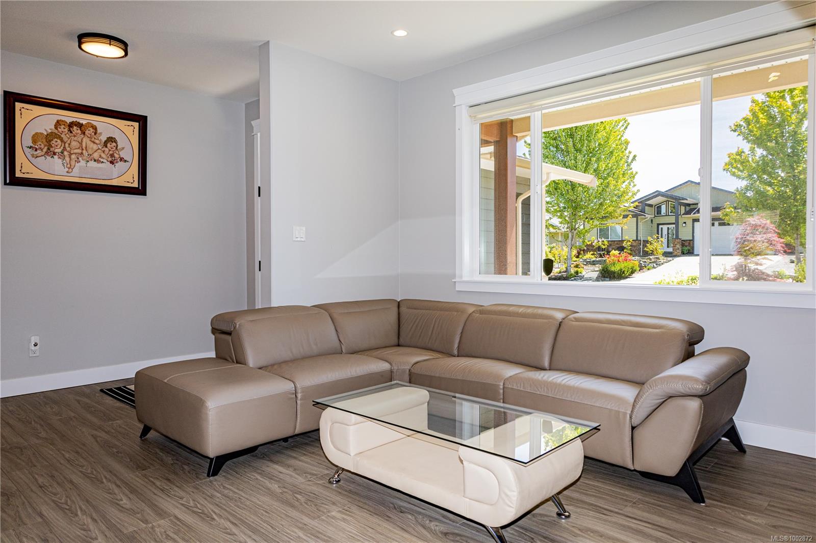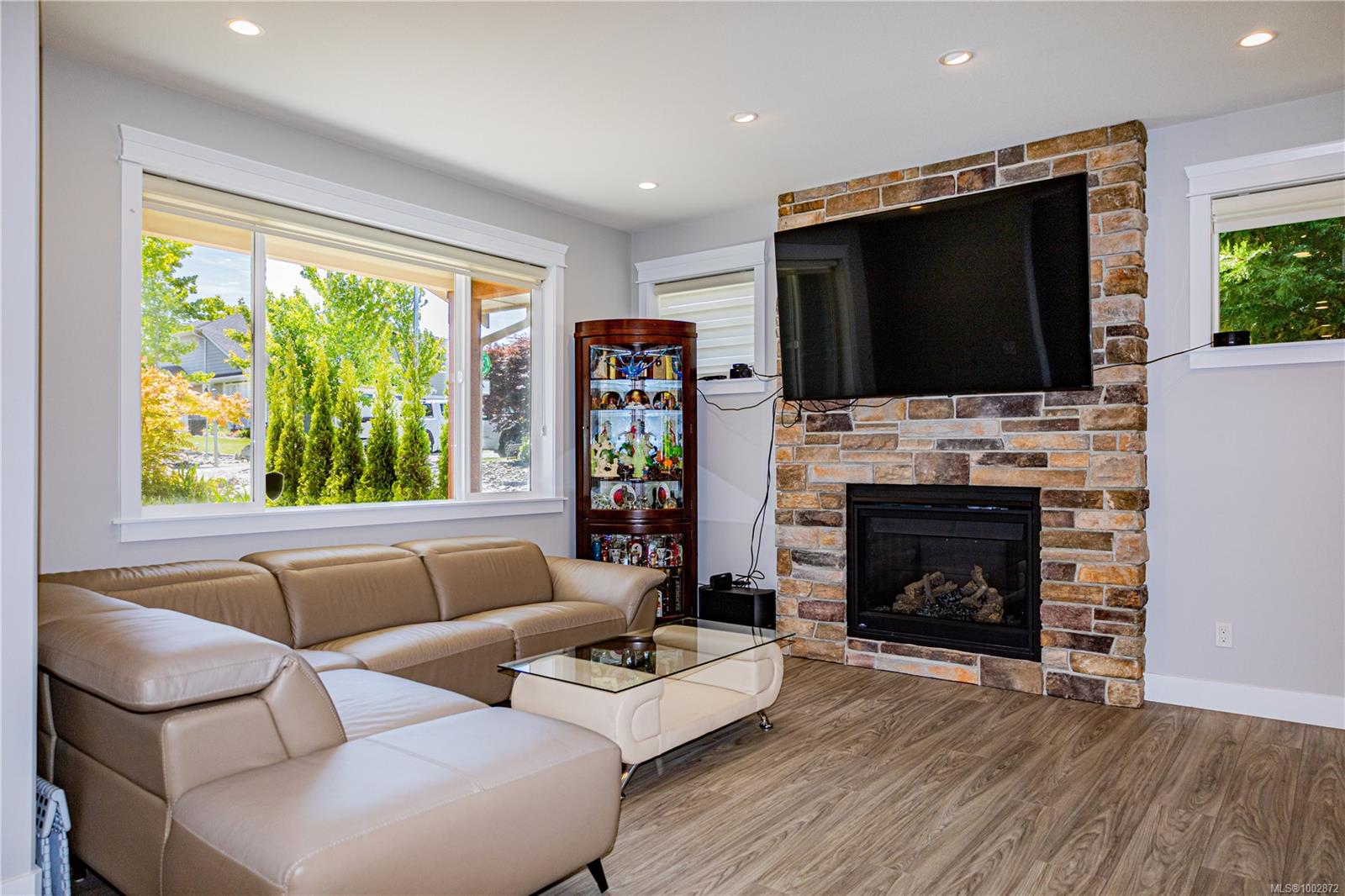 Better than & new with no GST! Willow Point, 1,550 sq/ft rancher with fantastic extra features that are sure to impress. Spacious open concept 3 bedroom, 2 bathroom home offers a stone faced hearth in the living room with gas fireplace, gleaming kitchen beautifully finished with modern white cabinetry topped with quartz counters, island, tile backsplash, Stainless KitchenAid appliances, gas stove & pantry. Vinyl plank flooring throughout. King sized primary suite complete with a walk in closet and a 5 pc ensuite finished with quartz counters, double sinks, heated tile floors, a large soaker tub and custom tile with glass doors enclosed walk in shower with soothing rain head. The two other bedrooms are also a good size and the second full bath with tub/shower has heated flooring & quartz counters. This great plan offers front & rear covered patio’s for year around enjoyment, landscaped with in ground sprinkler fenced. One of the best features is a 6 ft crawl space with exterior access.