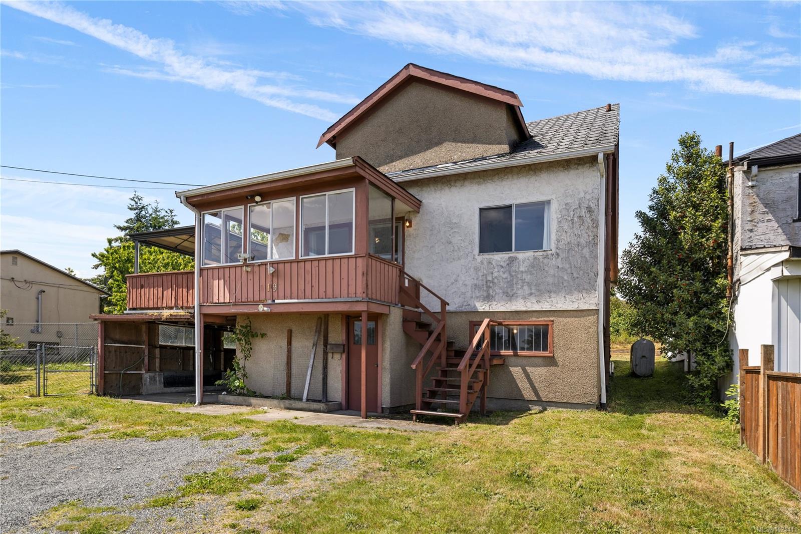 Must be sold as package with Lot 6 View Street ($225,000 MLS#1021413). This three-storey home offers ocean views and is ideally situated with convenient lane access and plenty of parking. There is development potential to build an additional dwelling on the adjacent second lot, details to be confirmed with the City of Nanaimo. A site survey is available. The main level features a spacious front living room and a functional kitchen with an adjoining eating area, along with two comfortable bedrooms and a four-piece bathroom. Upstairs, you’ll find a third bedroom and a den—perfect for a home office or creative space. The unfinished basement includes a workshop area and provides excellent storage or potential for future development. For more info see the 3D tour, video, and floor plan. All data and measurements are approximate and must be verified if fundamental.