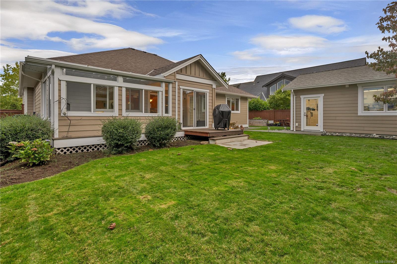 Welcome to this stunning 3-bedroom executive rancher plus a detached 400 sq ft fully finished studio/shop. You’ll be greeted by a formal living and dining area, perfect for entertaining guests. The kitchen features newer quartz countertop and backsplash, seamlessly opening to the family room with gas fireplace and bright eating nook. From here, enjoy easy access to the expansive sunroom. The primary bedroom is a true retreat, boasting a large walk-in closet and luxurious ensuite bathroom complete with a jetted soaker tub, and separate shower. Step outside into the beautifully landscaped, fully fenced backyard featuring raised garden beds, a garden shed, and a detached studio equipped with a heat pump and a 2-piece bathroom. Parking is never an issue with the double garage, spacious driveway, and dedicated RV parking. Nestled in a desirable family-friendly neighborhood, this property is surrounded by scenic trails and is just a short walk from the beach.