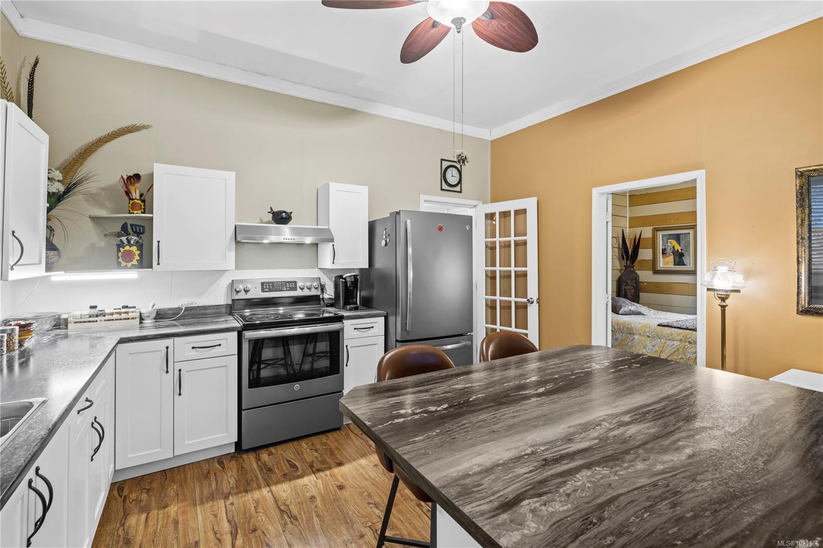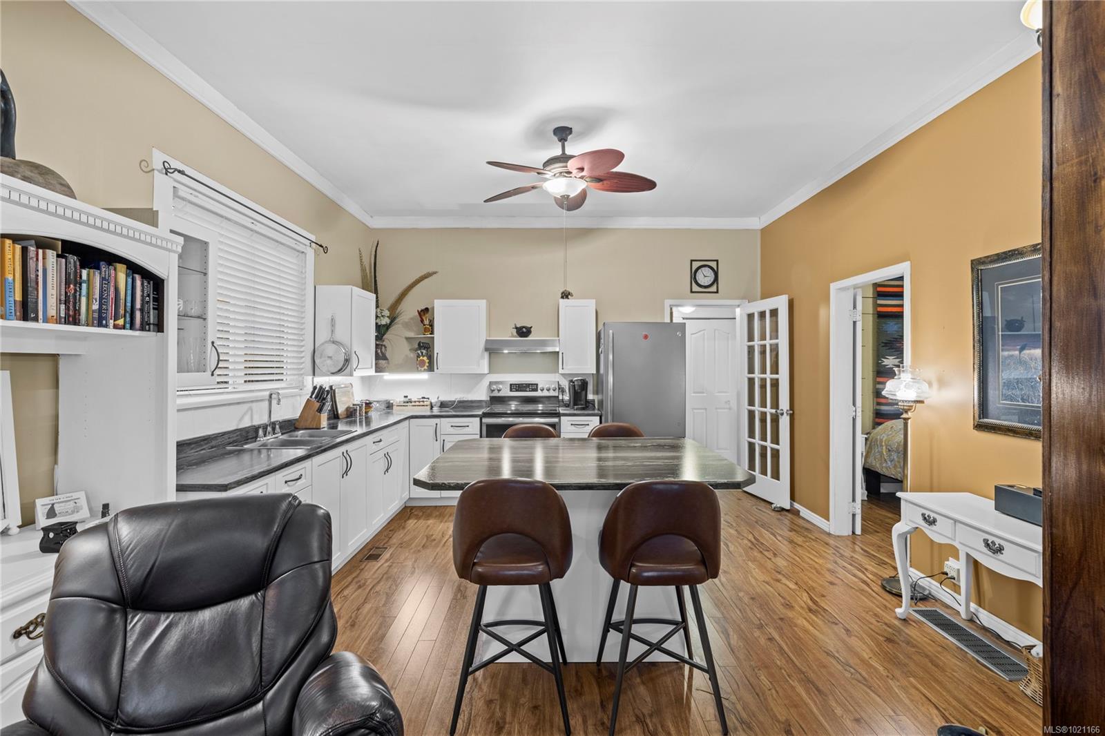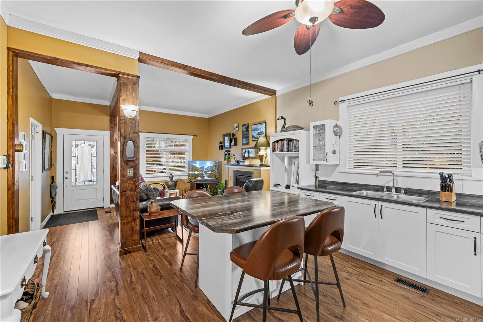 This charming 2 bedroom, 1 bathroom character home in the heart of Nanaimo is a little beauty! With 10-ft ceilings, an open layout & plenty of natural light, this home offers a bright & inviting feel. The kitchen has been tastefully updated, the windows have been modernized & an efficient heating/cooling system keep the costs at a minimum! Situated on a fully fenced lot, the home has front & rear covered porches, raised garden beds, a storage shed, RV Parking & alley access! The over-height crawl space provides an impressive amount of storage, making this home functional. This vibrant, eclectic neighbourhood offers incredible walkability. Enjoy being just steps from downtown & the Old City Quarter, filled with local shops & cafés. Transportation options to the mainland are minutes away & with future potential for a carriage home and all the essentials already updated, this is an ideal opportunity for first-time buyers, downsizers, or investors looking for a value-packed property.