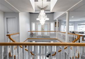 Beautifully cared-for one owner residence where timeless design meets modern comfort. From the moment you enter the grand foyer, you’re greeted with soaring ceilings, abundant natural light, and a warm sense of home. The main level offers a thoughtful layout designed for both everyday living and entertaining. A spacious living and dining area with a cozy gas fireplace flows seamlessly into the inviting kitchen and breakfast nook, while a separate family room provides the perfect place to relax. Three generous bedrooms, 2 full ensuites and a main bath complete the main floor. Downstairs, versatility abounds with a second family room, a 4-piece bathroom, laundry, a 4th bedroom and a self-contained 1-bedroom in-law suite with private entrance. This home has been thoughtfully updated with comfort in mind: a newer heat pump and furnace, hot water on demand, and remote-control blinds! Every detail reflects the pride of ownership.