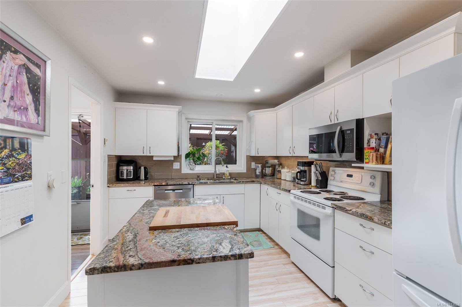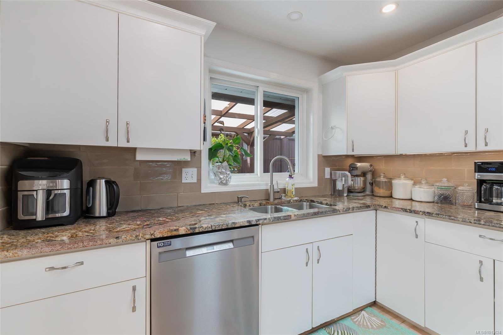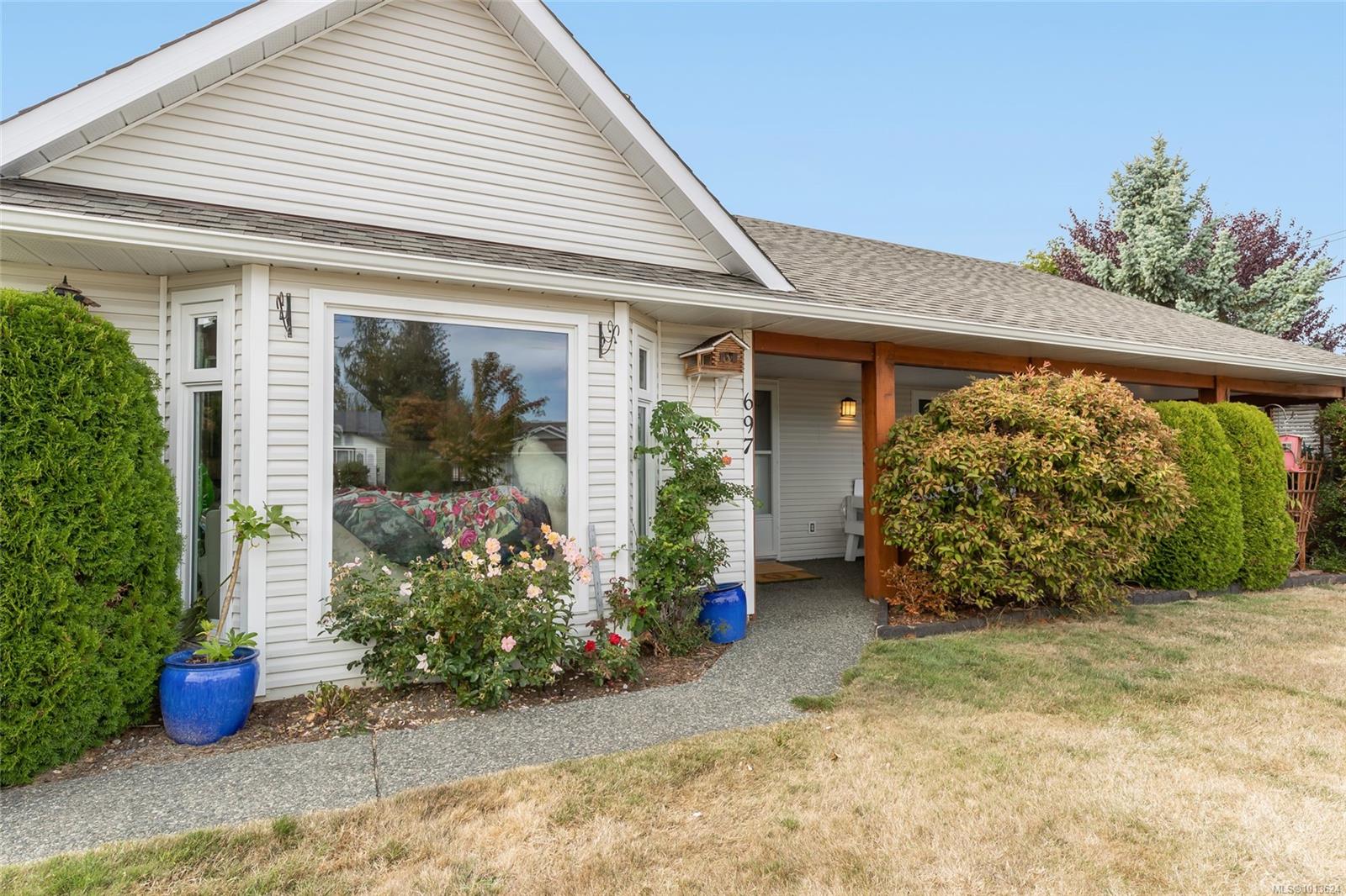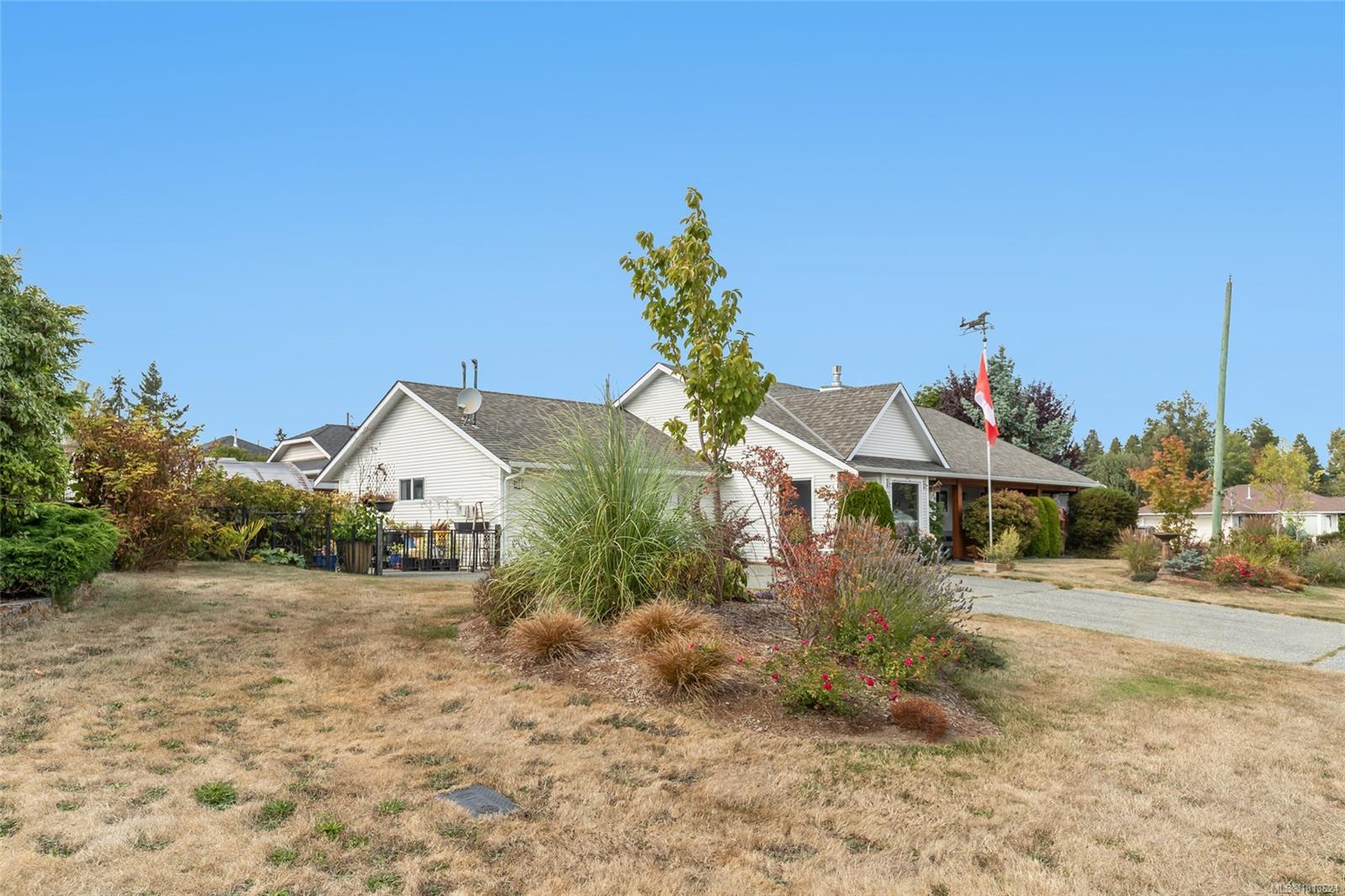 Looking for a spacious 3-bedroom rancher? Check out this lovely home featuring vaulted ceilings, bright kitchen with lots of cabinetry and counter tops plus a nicely upgraded garage. Over 1400 square feet of inside living space, featuring an open concept living/dining area with cozy gas fireplace. Two spare-bedrooms offer flexibility and a place for guests, while the primary suite is complete with 3pc ensuite. And outside offers two private, sheltered patio/ porch areas. A large side yard with greenhouse and two additional sheds. This corner lot offers excellent RV and other toy storage. Very private yard, and located in a quiet, residential neighborhood. Minutes to schools, shops, restaurants, cafes, beaches, trails, golfing, parks and absolutely everything Parksville has to offer… and just a short drive to Qualicum Beach.